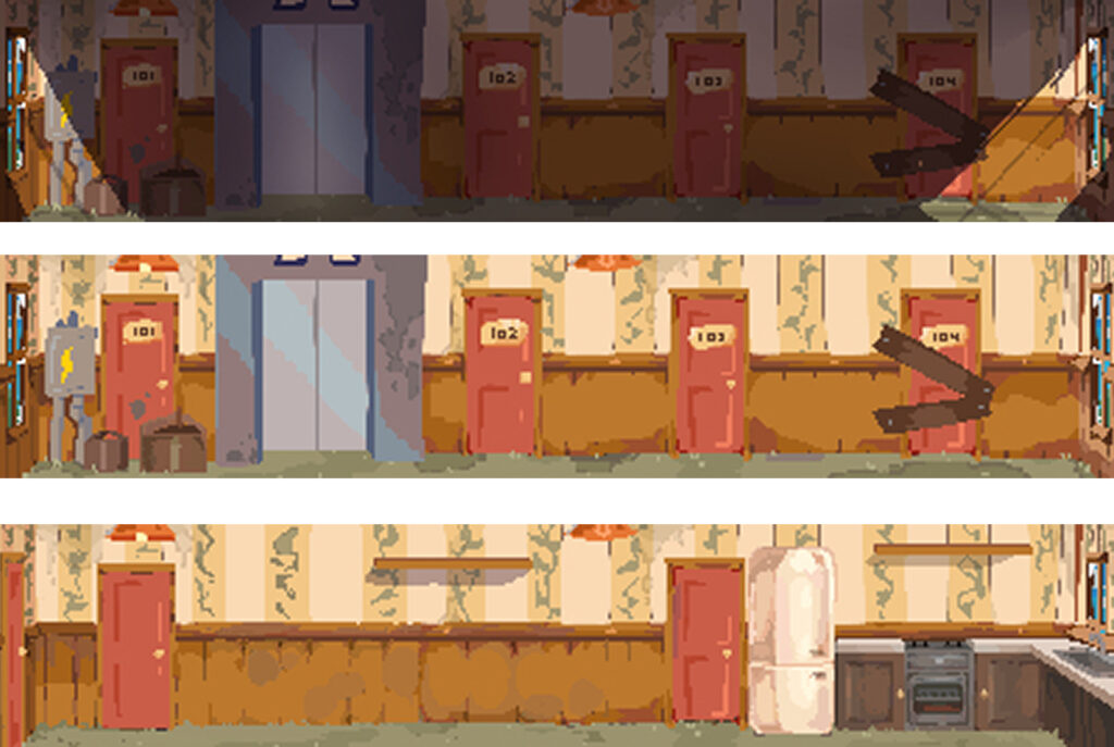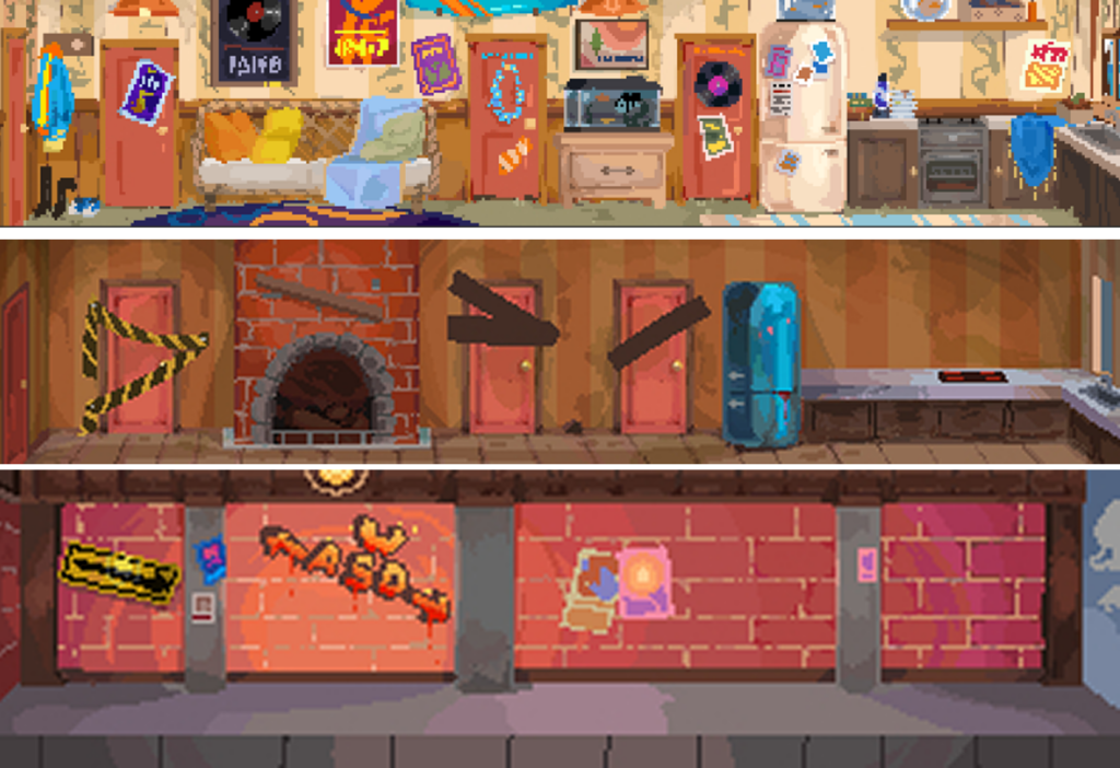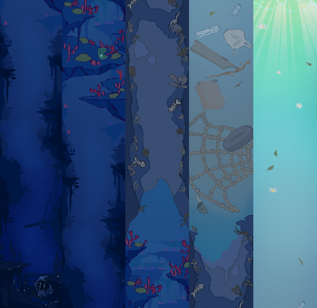 I designed and drew characters and backgrounds for the game, and developed the main artstyle.